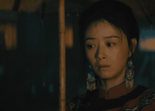 撑着伞在雨中抱怨来往客栈的客人折腾,一个白眼翻过去,让我感觉看到了华妃娘娘,带着一股子娇媚的感觉。