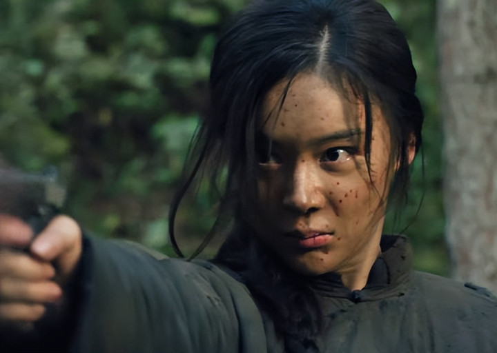 新剧中她扮演的花儿同样是抗联小队战士,巾帼不让须眉,举枪杀敌时她英姿飒爽,铁骨铮铮。