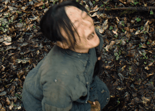 而因为自己露面导致母亲和其他几个乡亲命丧黄泉,花儿躲在林子里仰天痛哭,悲痛欲绝又懊悔、愧疚的表情令人不忍,哭戏相当令人动容。